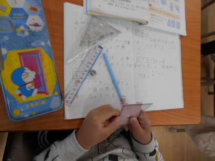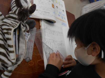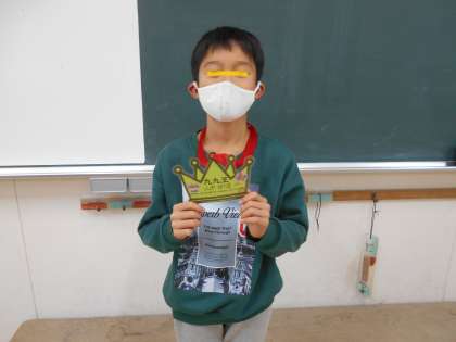 昨日1組に『九九王』が誕生したので、今日は算数の時間に王冠を渡しました。『九九王』には、九九のすべての段に合格した『九九マスター』たちだけが挑戦できます。クラスみんなの前で先生がランダムに出題する20問の九九に瞬時に正確に答えることを3回繰り返さなければなりません。『九九王』への道はとても険しいですが、諦めずに何度もチャレンジする人が何人もいるのはとてもすてきなことです。九九王へ王冠を渡した後は、「三角形と四角形」の学習の続きをしました。今日は長方形について学びました。身の回りにある長方形のものをたくさん見つけてほしいです。