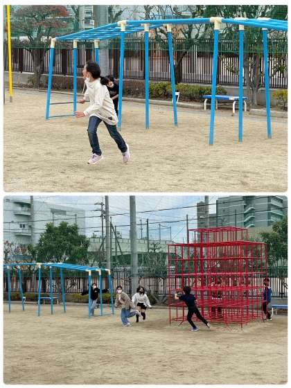 教室の中で、フルーツバスケットをしました。なかなか普段遊ばない遊びなので、とても盛り上がりました!その後、運動場に移動して鬼ごっこをしてから、ドッジボールをしました。今回のために遊び係の人がチームを考えてくれました。普段休み時間にはボール遊びをしない人も遊んでいて、とても楽しかったです!いい気分転換になったようです。明日からの経年調査をがんばってほしいです!