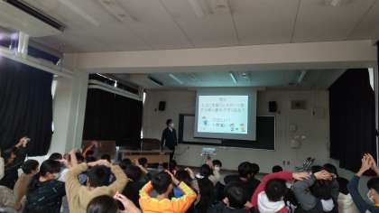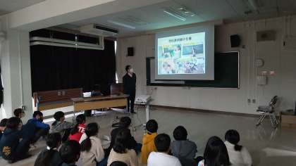 授業のはじめに横井先生から「学校薬剤師」の仕事について紹介がありました。横井先生は神津小学校のみんなが元気に学校生活を送るために、様々な環境検査をしてくれています。