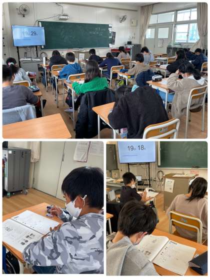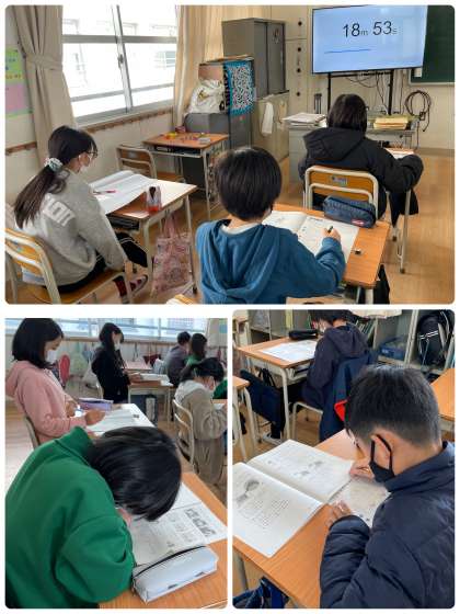 2日間で5教科のテストをしました!ワールドカップの日本代表のあきらめず最後までがんばる!という姿から、最後まであきらめずにがんばろう!と約束していました。わからなくても、何度も何度も考え直して取り組む姿が見えました。