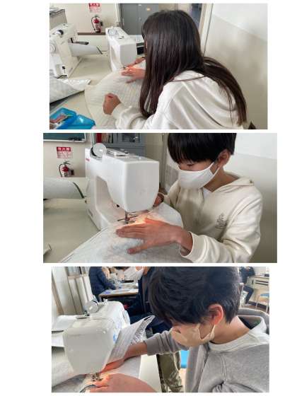 いよいよナップサックの完成が間近になってきました!ミシンにもだいぶ慣れてきて、素早く縫うことができています。友だちにアドバイスできる人も出てきました!