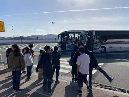 修学旅行 福山SAに着きました。
