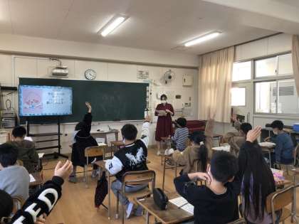 四年生の「ハングルを知ろう」の学習ではソンセンニㇺに韓国の文化や言葉、歴史、ハングルなどを教えていただきました。子ども達は最初、見慣れないハングルにとまどいましたが、授業が進むにつれて、自分たちの名前をハングルで書く事が出来ました。最後はみんなでソンセンニㇺに「アンニョンカセヨ」と挨拶をしました。本当にありがとうございました。