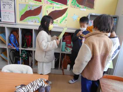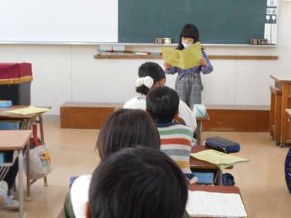 『お手紙』の学習のまとめをしました。「読んだかんそうを伝え合おう」という単元のめあての通り、今日はひとりずつ感想を書いて、班やクラスで発表しました。「がまんくんがお手紙をもらえてよかったです。」「自分が初めて手紙をもらったときのことを思い出しました。」「かえるくんが書いたお手紙に『親愛なる』や『親友』という言葉が使われていていいなと思いました。」など、自分の思いを書こうとする人が多かったです。班で交流した後に「全体で発表できる人?」と聞くと、何人もの手が挙がりました。友だちの感想を聞いた後に、「似たことを書いた!」「ここが少し違う。」などと、さらに交流できたのもよかったです。