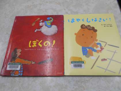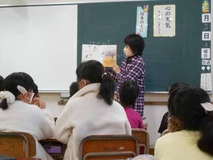 今日読んでもらったお話は、『ぼくの!』と『はやくしなさい!』でした。『ぼくの!』では、お話の最後に、仲良くなったおばけから手紙が届きます。国語科で『お手紙』を学習したみんなは、そのお手紙がどれだけ嬉しくて幸せな気持ちになるか、すぐに想像できたようです。『はやくしなさい!』では、「ぼく」がママに、朝目が覚めてからずっと「おはようじゃないわよ。はやく きがえて!」「はやく かおを あらって!」「はやく ごはん たべちゃいなさい!」と矢継ぎ早に言われ続けます。一文ずつ読んでもらうたびに、「あ、おれや!」「おれや!」「おれや!」と言っている人がいました。朝本を読んでもらい、落ち着いて1日をスタートすることができました。