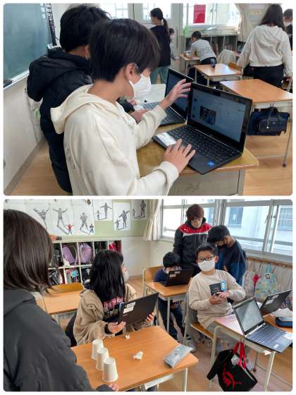 お楽しみ会の準備をしています。1学期よりレベルアップして見ている人も楽しむことができる出し物をグループで計画しています!マジックやタブレットでスライドを作って写しながら出題するクイズ、学校あるあるコントなどどれも楽しみです。