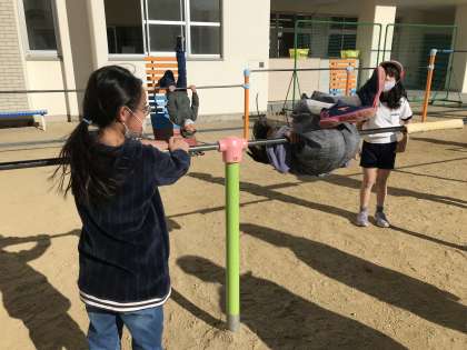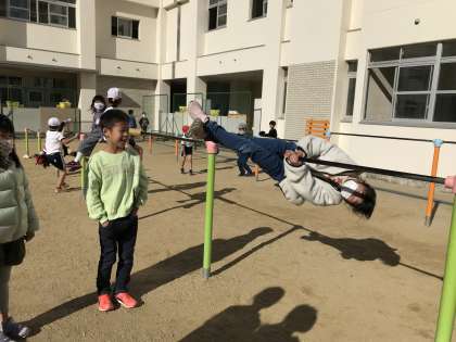 寒い日が続きますが、2年生は元気に外で遊ぶ人がたくさんいます。最近は他の学年の人たちとおにごっこをしたり、ドッジボールをしたりする人が増えました。他の学年の人たちと遊ぶことができるのは休み時間の特権です。今日は「新しい技ができるようになったから見に来て。」と言われたので行ってみると、鉄棒に跨って両足で挟み、そのまま横にクルクルと回る技を見せてくれました。鉄棒もなわとびも、みんなどんどん上手になっています。