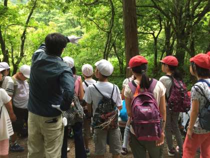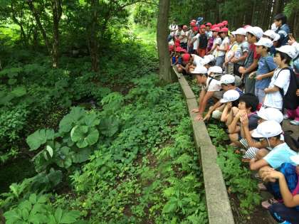 高原散策です。みやま荘の方に円山川の源流になっている湧き水のところに連れて行ってもらいました。きれいな水のところにしか育たない水草のバイカモも、見ることができました。