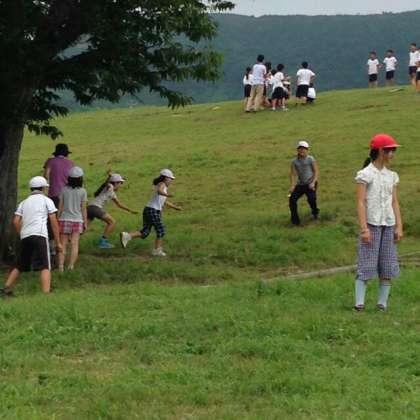 高原では鬼ごっこや、だるまさんが転んだをして遊んでいます。