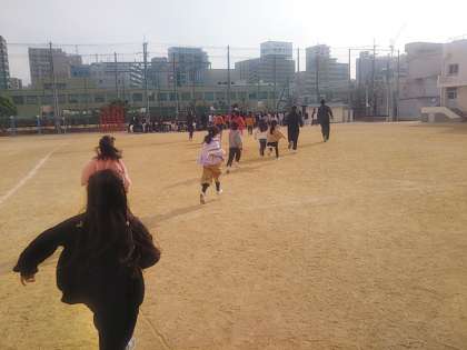 避難後に避難訓練の大切さについて話しました。命を守るための行動が取れるように訓練をすること。一番大切なことは「命」だと話しました。今日は、「お」押さない、「は」走らない、「し」しゃべらない、「も」戻らない をよく守って落ち着いて避難できたと思います。