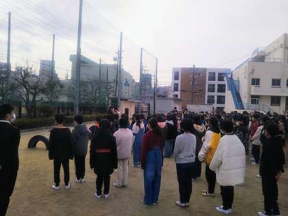 2時間目に避難訓練をしました。今月の17日で阪神淡路大震災から28年になります。