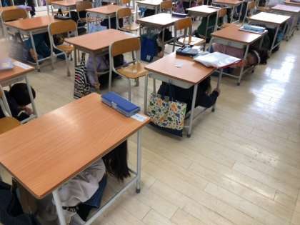 今日の2時間目は、地震や津波が起きたときにどのように身を守り、どう避難すればよいかを目的とした『避難訓練』でした。