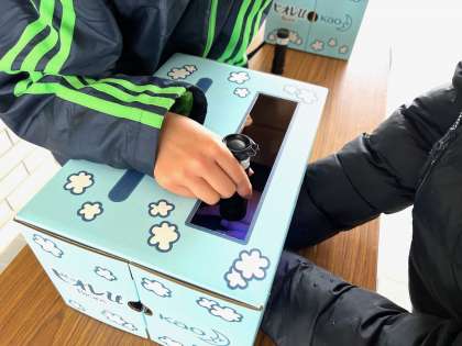 今日の昼休みは、3年生の手洗いチェッカー体験の日でした。