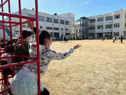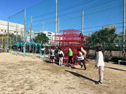 担任含む警察チームの5人で、泥棒チームの人たちを追いかけます。しかし、泥棒チームの逃げ足の速さやチームプレイの良さもあり、いくら捕まえても全員を捕まえることができず、今日は泥棒チームが勝利を収めました。昼休み終了のチャイム後、「1回も捕まらなかった〜!」「まだまだやな〜!」と、余裕そうな声も多々聞こえてきました。エンドレスに走り回る子どもたちの体力は計り知れません…。