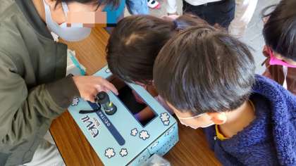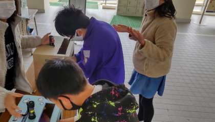 1月13日(木)〜19日(木)は手洗いチェッカー体験をお昼休みに玄関で行いました。
