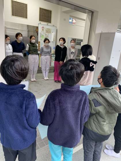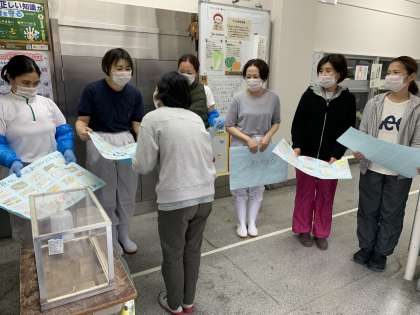 神津小学校の児童も、日々の給食への感謝の気持ちを込めて、給食調理員さんに感謝のメッセージを書きました。給食委員会の児童が代表して、給食調理員さんに全学年分のメッセージを渡しました。