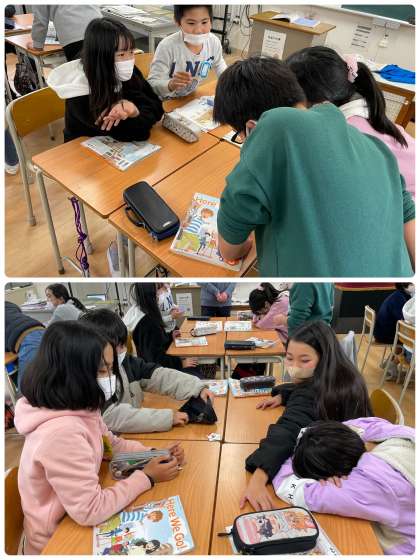 今日は、ものがどこにあるかを尋ね合いました!ボールやえんぴつのカードを隠して、友だちと場所をあてるゲームを通して、だいぶ場所を伝える相方に慣れたようです!英語な楽しいゲームを通して、身につけていくのが1番いいですね。次も頑張りましょう!