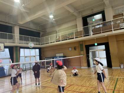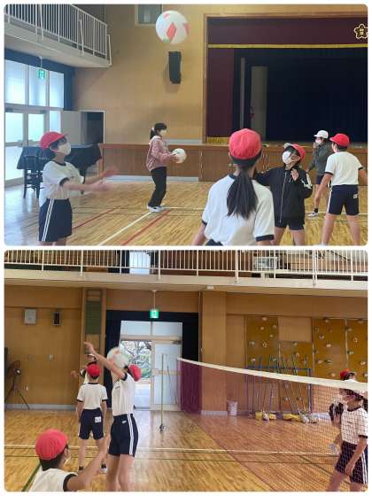 ソフトバレーの3回目の学習でした。今日は、グループでめあてを決めてから学習に入りました。