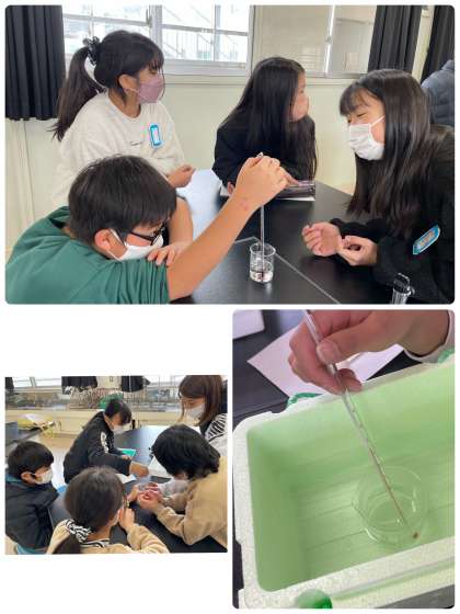 今日は、ものの溶け方の実験第三弾です!塩やミョウバンが水にどれだけ溶けるかはわかったので、今日は水の温度を変えて、溶け方は変わるかを実験しました!今回は30度にしました。