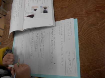 『あなのやくわり』という説明文の学習に入りました。教科書の例に挙がっているのは五十円玉、プラグ、植木鉢、醤油さし、の4つです。それぞれの物のどこに穴が開いているか、なぜ穴が開いているかが分かりやすく書かれています。「身の回りで、他に穴が開いているものはある?」と聞くと、「ドーナツ」「バウムクーヘン」「鉛筆削り」「腕時計のベルト」「鉛筆のキャップ」「ほうきのネジのところ」など、たくさん見つけることができました。