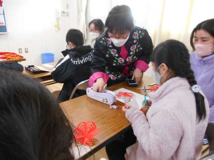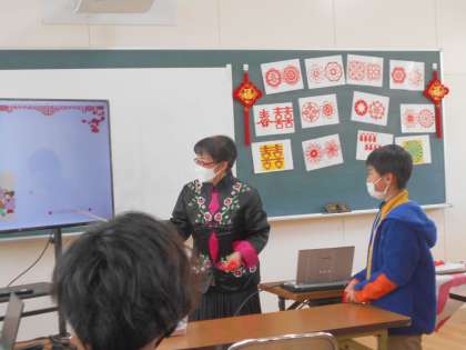 今日は今年度2回目の中国国際クラブがあり、2年生では4人の友だちが参加しました。ちょうど多文化共生の学習で外国について学んだ日だったので、「私も中国国際クラブに参加して中国のことを知りたいです。参加できますか?」と聞いてきた人もいました。他国の文化を知ろうとするのはとても大切なことです。今日は講師の先生の指導のもと、正月のあいさつをしたり、折り紙を使って飾りを作ったりしました。保護者が来ることができなかった子は、「持って帰ってお母さんとおばあちゃんに見せる!」と言っていました。楽しみながら中国の文化に触れることができた、充実した時間でした。