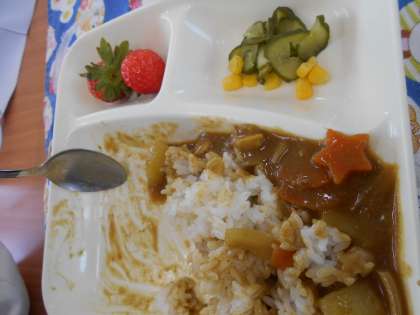今日の給食のカレーにもラッキーにんじんが入っていました。ラッキーにんじんが入っっていたのは1人だけでしたが、「ラッキーにんじん入ってなくても美味しいからいい!」「いちご、めっちゃ甘〜〜い!」とみんな大喜びでした。以前校長先生が朝会で話してくださった牛乳の話もずっと覚えていて、金曜日になると「何曜日がおいしかったか聞いて。」と言いに来る人たちが何人もいます。気温が下がってからも、欠席の友だちの分の牛乳も飲み切る日がほとんどです。まだ寒い日が続くので、しっかり食べて強い体を作ってほしいです。