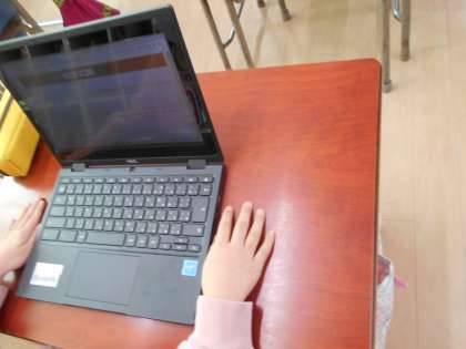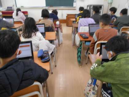 今日は、タブレットを使ってアンケートに答えました。アンケートに答えるのは、操作自体は難しくありません。でもローマ字も、「確認」「戻る」「提出」などの漢字も学習していない2年生にとっては、小さなハードルがいくつもありました。それでも、みんな1年かけてタブレットでできる操作を増やしてきたので、全員が答えて提出することができました。アンケートに答えた後は、「1年間の成長すごろく」の続きをしました。「デジタルドリルで連続正解した。1ます進む。」というますを作っている人もいます。3年生になってローマ字を学習したら、タブレットでできることがもっと増えるに違いありません。