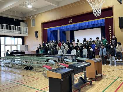 24日には学習参観がありました。講堂では、ついに合奏のアフリカンシンフォニーと合唱のマイバラードを披露しました。