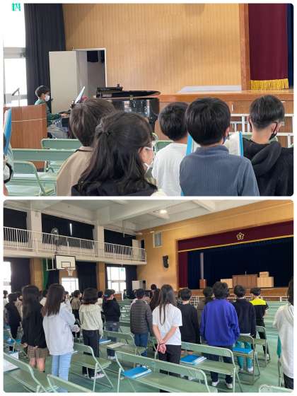 今日はこの地球のどこかでと旅立ちの日にの歌の練習をしました。歌う場所が座席なので、ピアノとは少し遠いですが、頑張って歌いました。