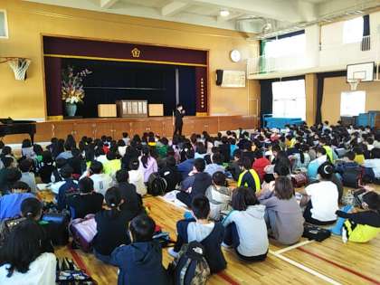 講堂で始業式をおこなった後、クラス発表がおこなわれました。そして、1年生は教室で先生のお話をしっかり聞いていました。教室では緊張しませんでしたか。
