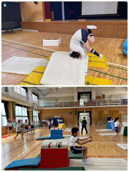 今日から跳び箱運動の学習を始めました!開脚跳びと台上前転の練習をしました。久しぶりの跳び箱で少し緊張した様子でしたが、
