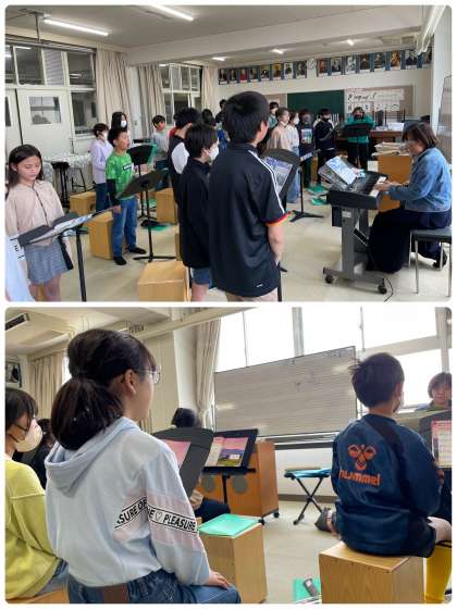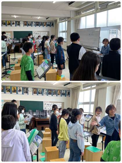 その後、つばさをくださいを合唱しました!歌詞をすぐ覚えて、とても上手に歌っていました。そして、おぼろ月夜を聴いて、歌の練習もしました。作曲者についても学習し、とてもたくさんの有名な曲を作っていることに驚いていました。