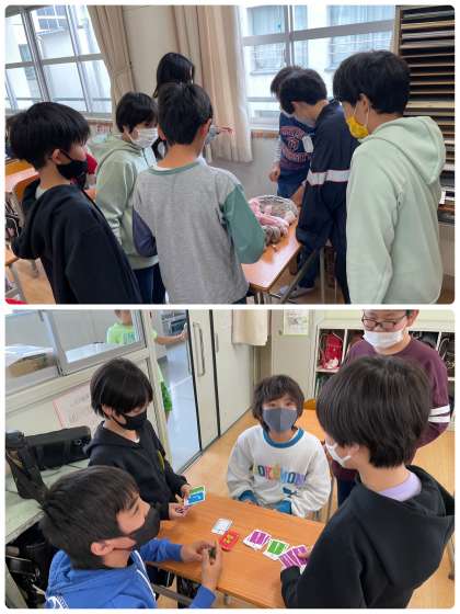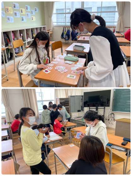 あいにくの雨でしたが、今日も仲良く遊んでいました。トランプや語彙のカードゲームなど色々な遊びをしていました!今日は1日残念ながら外で遊ぶことができませんでしたが、笑顔あふれる教室でした。