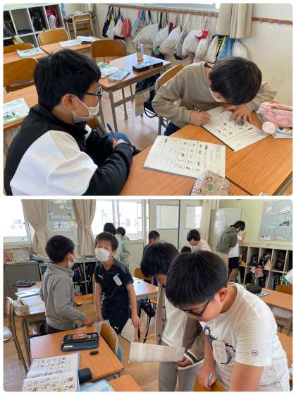 外国語の学習では、得意なことを聞き合う練習をしました。まずはじめに、What are you good at?と聞き、I'm good at