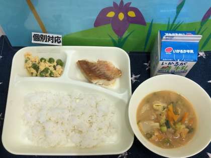「えんどうの卵とじ」は、『卵』の個別対応献立です。