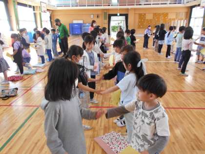 1年生も2年生も、はじめは緊張していましたが、ペアみつけゲームや、じゃんけん列車をするうちに、笑顔になっていきました。