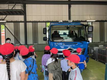水をきれいにする施設をみたあとは、水をきれいにしていく過程で出た汚れやゴミ、災害時などに給水する応急給水車をみました。水をきれいにしていく過程で出たゴミや汚れは、大阪湾の埋め立ての土として使われたり、セメントとして再利用されていることを学びました。