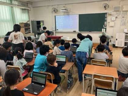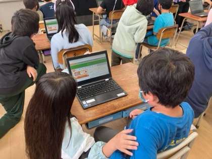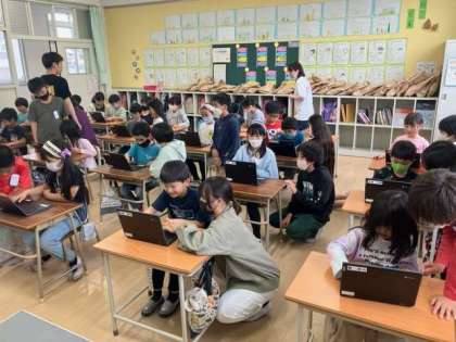 5時間目に「タブレット開き」をしました。6年生のお兄さんお姉さんが来てくれて、優しく教えてくれました。