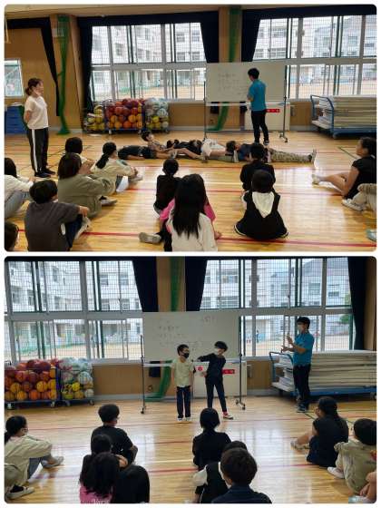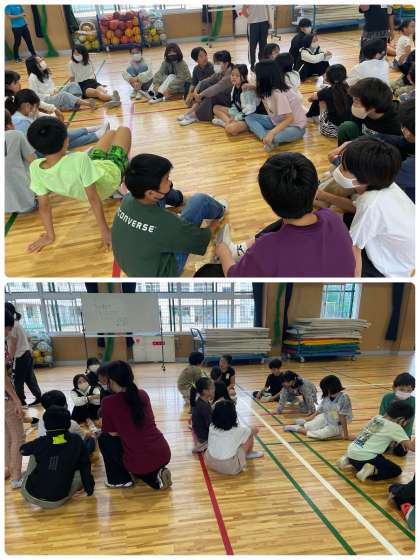 応援団は朝練をしています。今日の活動では、ウェーブの時の動きを学年で話し合って考えました。人間ピラミッドやジャンプマンなどおもしろい動きの案がたくさんありました。