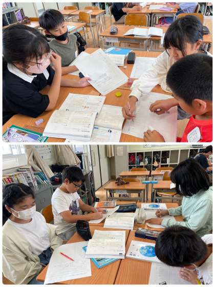 国語科では友達の意見を聞いて考えようの学習をしています。世の中の出来事を知るときに、テレビ、新聞、インターネットのどれを使うかを考えました。まず自分の意見を書き、グループの友だちと交流し、友だちの考えをワークシートにメモをしました。明日の時間には続きをして、友だちの意見を聞いて自分の考えと比べていきたいと思います。