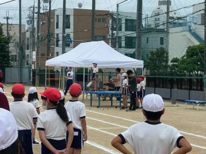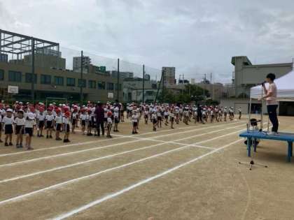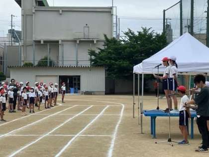 まず、開会式の練習です。児童代表の言葉や、運動会の歌の練習をしました。