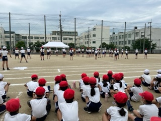 今日は朝から降り続いた雨も止み、運動会の全体練習をしました。