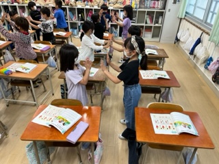 子ども達は三拍子を感じながら友だちと手をたたきながら歌いました。