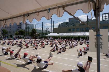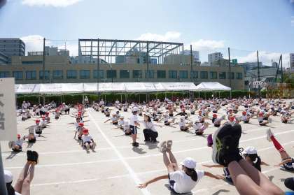 神津体操は本校オリジナルの体操で専門家の方のご指導をいただきながら子どもたちや先生方で考えたものです。