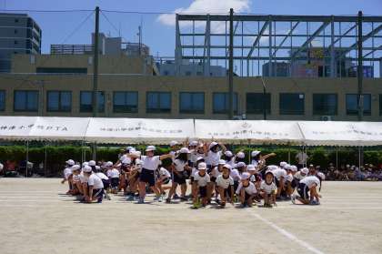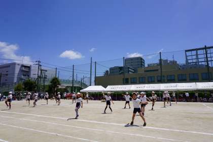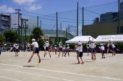 バスケットボールの、ドリブル、また通し、ジャンプシュートやダンクシュートなどの動きも取り入れ、躍動感をもって踊りました。学年全体で円になっての決めポーズに拍手が送られました!