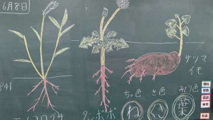 植物の種類や大きさが変わっても、根・くき・葉に分かれていることを色々な植物を見比べながら学習しました!