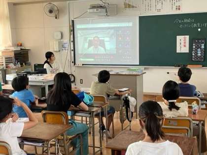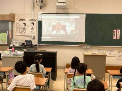 今日の児童朝会は雨が降りそうだったので「オンライン」で行いました。各教室から職員室とつないで朝会を行いました。スムーズにつながったかな、と思います。