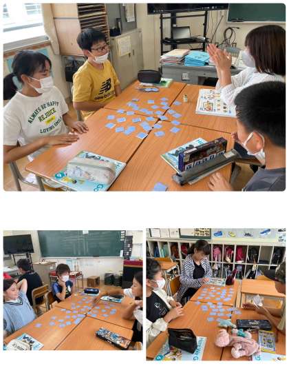 カードを使って、友だちが見たいスポーツを予想して当てるゲームをしました。なかなか当たりませんが、楽しみながらゲームをしています。ゲームを通してたくさんの単語も言えるようになり、尋ね方もマスターしています!
