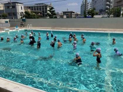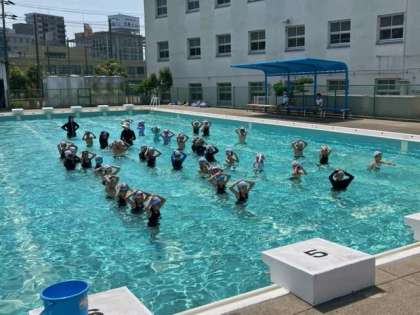 今日は待ちに待ったプール開きです。1番最初に2年生が入りました。とてもきれいな水で、気持ちよかったです。子どもたちも、気持ちよさそうにプールに入り、水に親しんでいました。