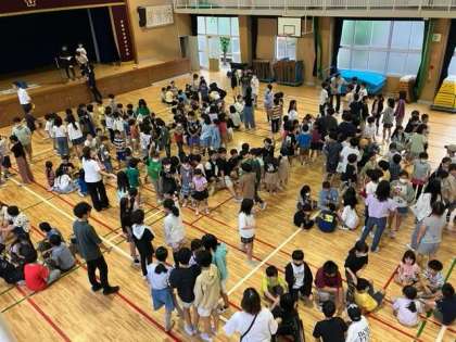 今日の児童集会は「もうじゅうがり」をしました。子どもたちは、文字数に合わせて友だちをさがしていました。雨で講堂での活動になりましたが、みんな楽しそうにしていました。